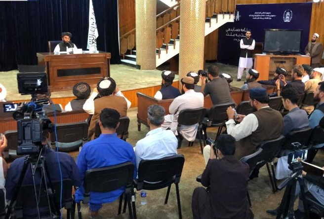 阿富汗塔利班7日举行新闻发布会现场