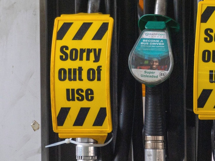 这是9月25日在英国伦敦拍摄的一家停业加油站的加油机。(新华社发,雷伊·唐摄)