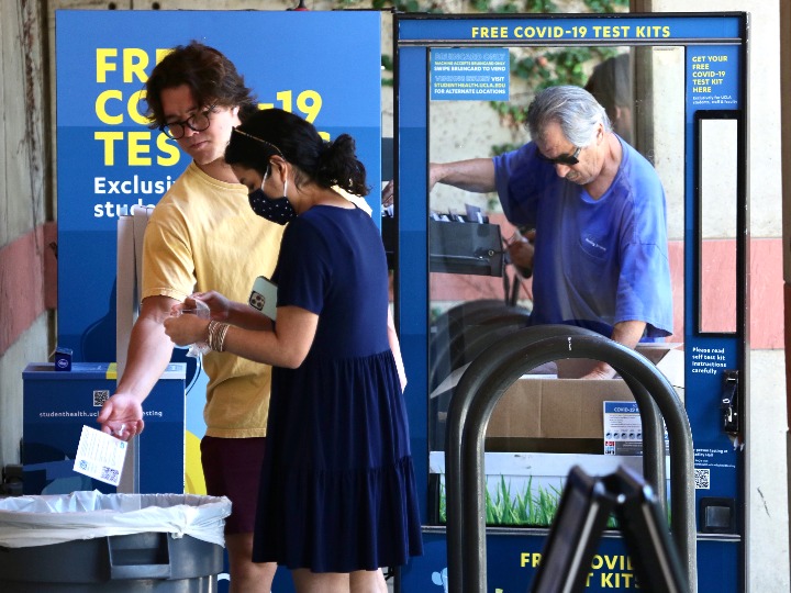 2021年9月23日,人们在美国加州大学洛杉矶分校进行新冠病毒自助检测。(新华社发)