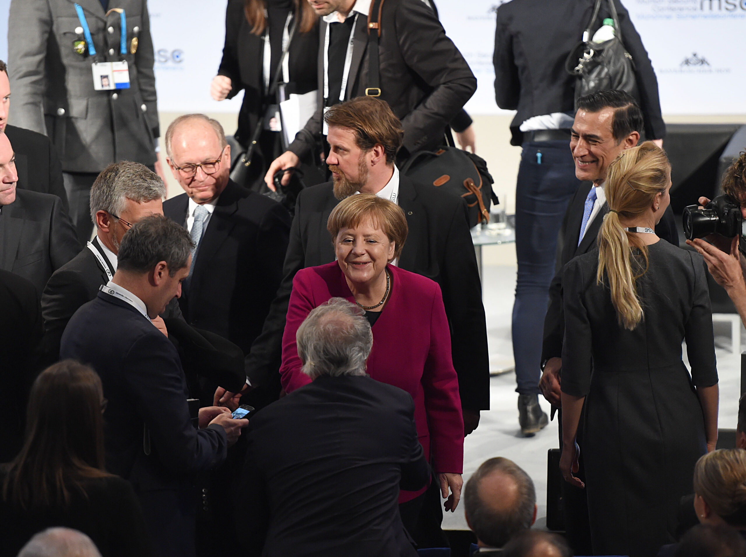 2019年2月16日,在德国慕尼黑,德国总理默克尔出席慕安会。新华社记者逯阳摄