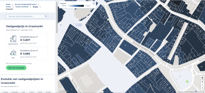 Immoweb表示,这张地图每月都会根据市场动态更新。它还能显示十年间的房价变化。