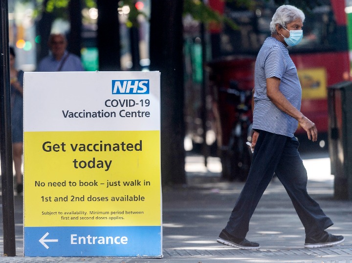 9月7日,一名男子从英国伦敦一家新冠疫苗接种中心门前走过。新华社发(雷伊·唐摄)