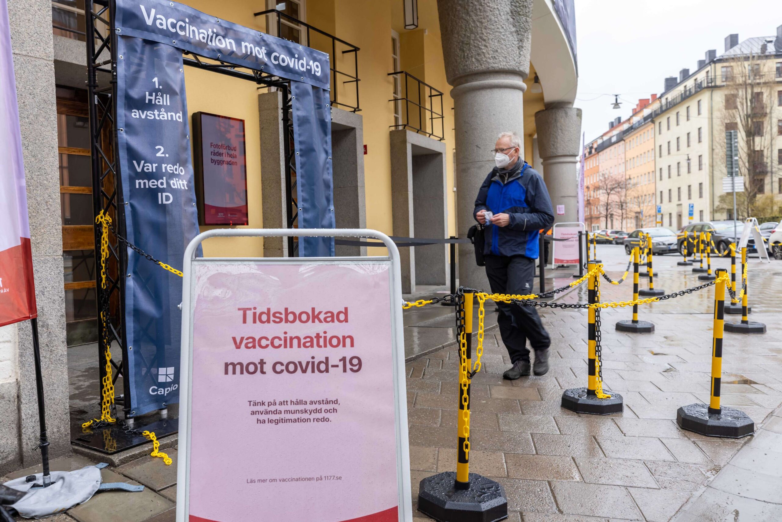 5月6日,在瑞典斯德哥尔摩,一名戴口罩的男子前往新冠疫苗接种中心。(新华社发,魏学超摄)