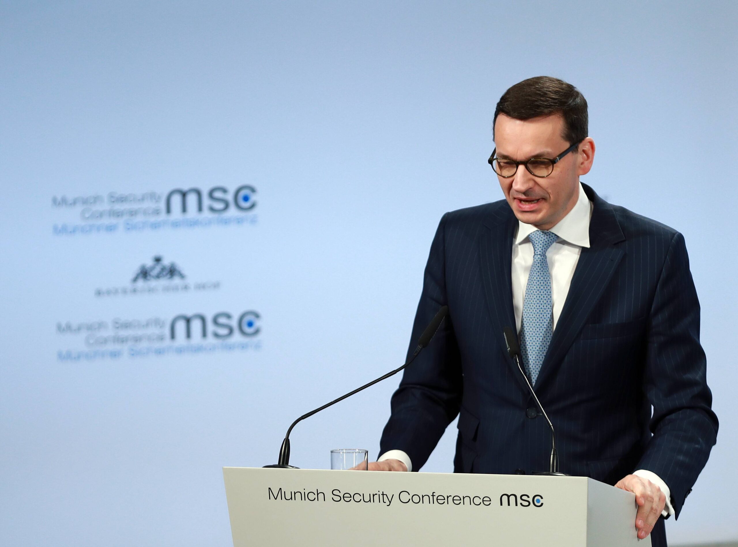 2018年2月17日,波兰总理莫拉维茨基在慕尼黑安全会议上发言。(新华社记者罗欢欢摄)