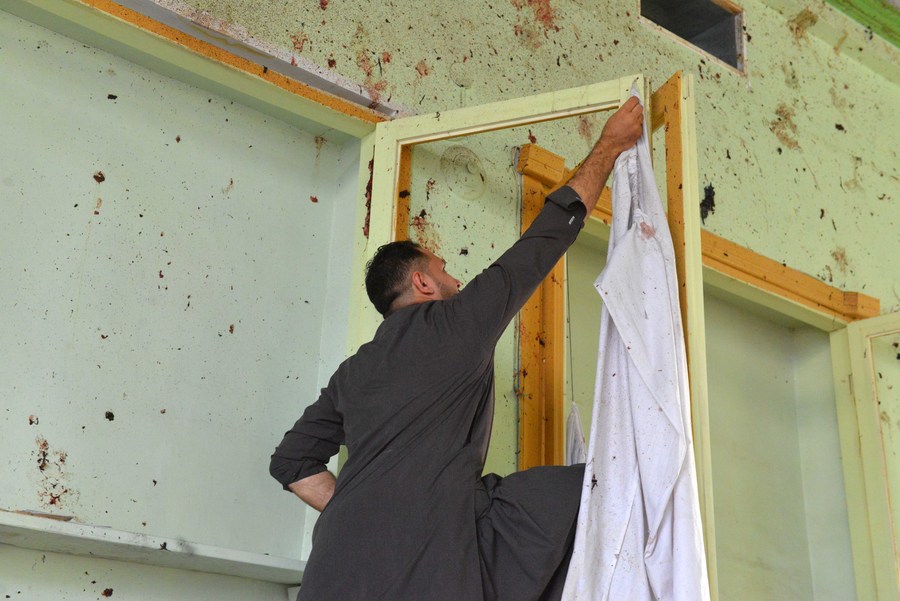 10月15日阿富汗南部坎大哈省坎大哈市清真寺爆炸现场。(新华社发,萨纳乌拉·西奥姆摄)