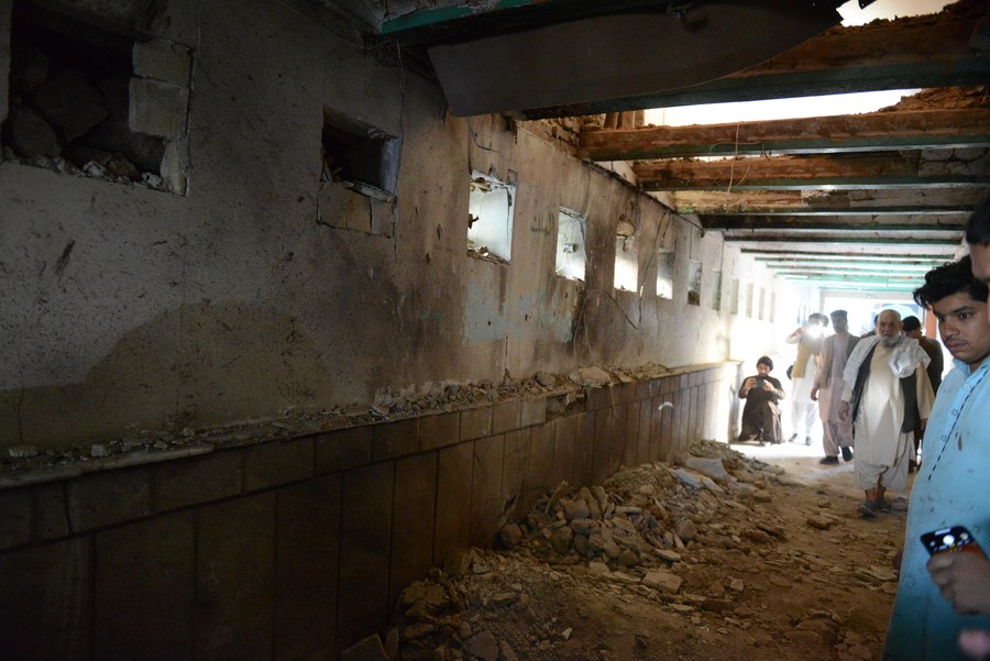 10月15日在阿富汗南部坎大哈省坎大哈市拍摄的清真寺爆炸现场。(新华社发,萨纳乌拉·西奥姆摄)