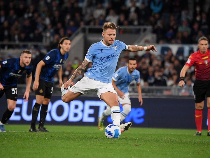 10月16日,拉齐奥队球员因莫比莱(前)在比赛中攻入点球。新华社发