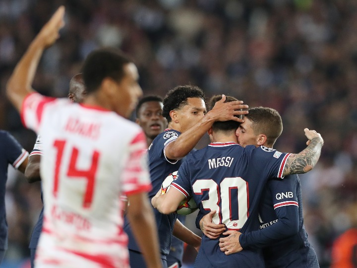 A组中,“大巴黎”第九分钟就由姆巴佩利用反击机会破门,但莱比锡第28和第57分钟各入一球,2:1反超。不过,梅西第66分钟接姆巴佩右路突进后的横传,跟进打门得手,将双方拉回同一起跑线。随后,姆巴佩反击中带球杀入禁区被对手放倒,梅西主罚点球命中,为主队锁定胜利。补时阶段哈基米还曾为“大巴黎”赢得一次点球机会,但姆巴佩将球打高。