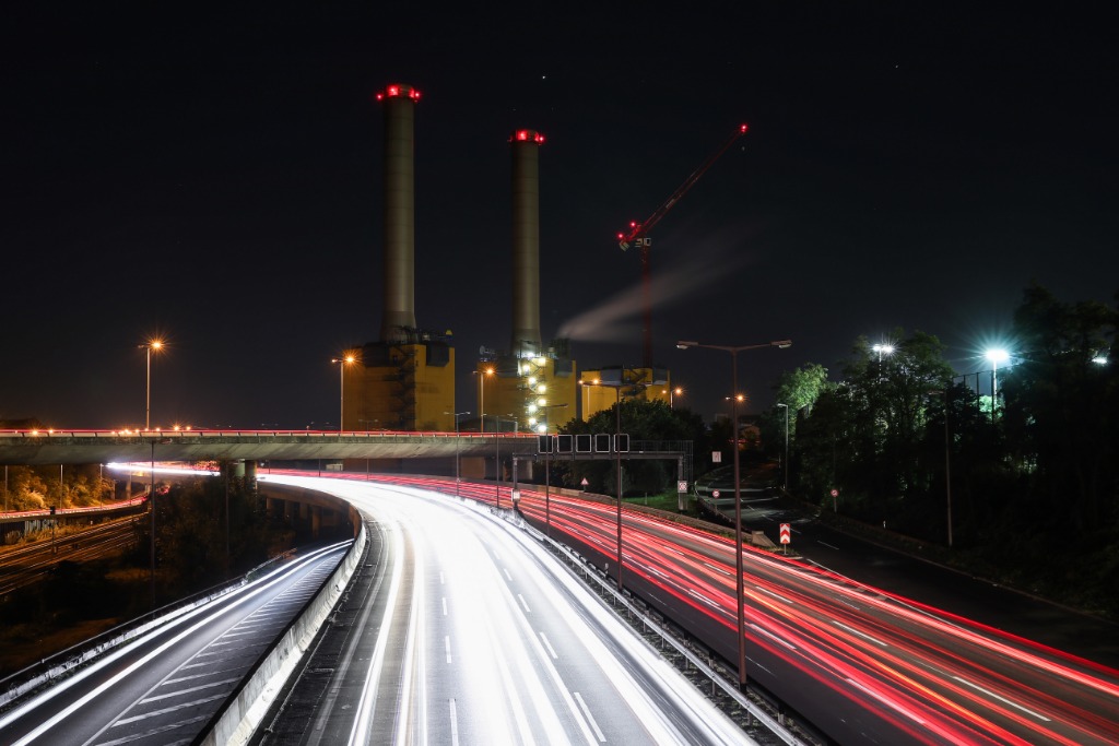 10月8日在德国首都柏林拍摄的一座正在拆除烟囱的热电厂。该热电厂为实现碳中和目标在拆除厂内的三座烟囱及锅炉房。(新华社记者单宇琦摄)