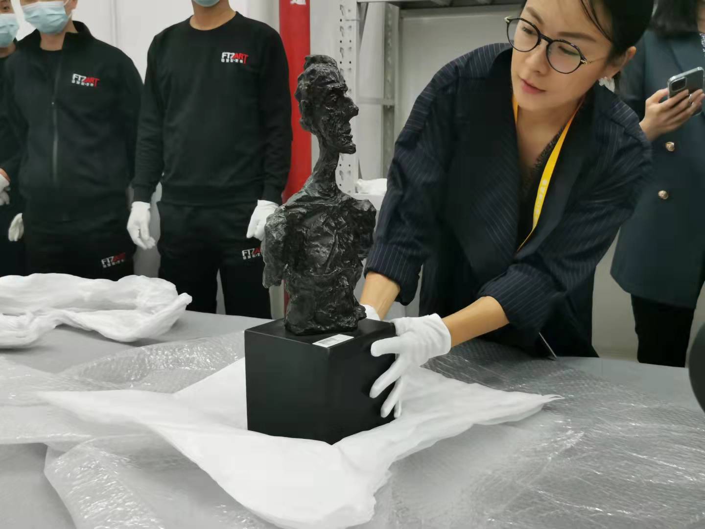 图片说明:苏富比为第四届进博会带来贾柯梅蒂的《戴亚高的半身像》 新华社记者桑彤 摄