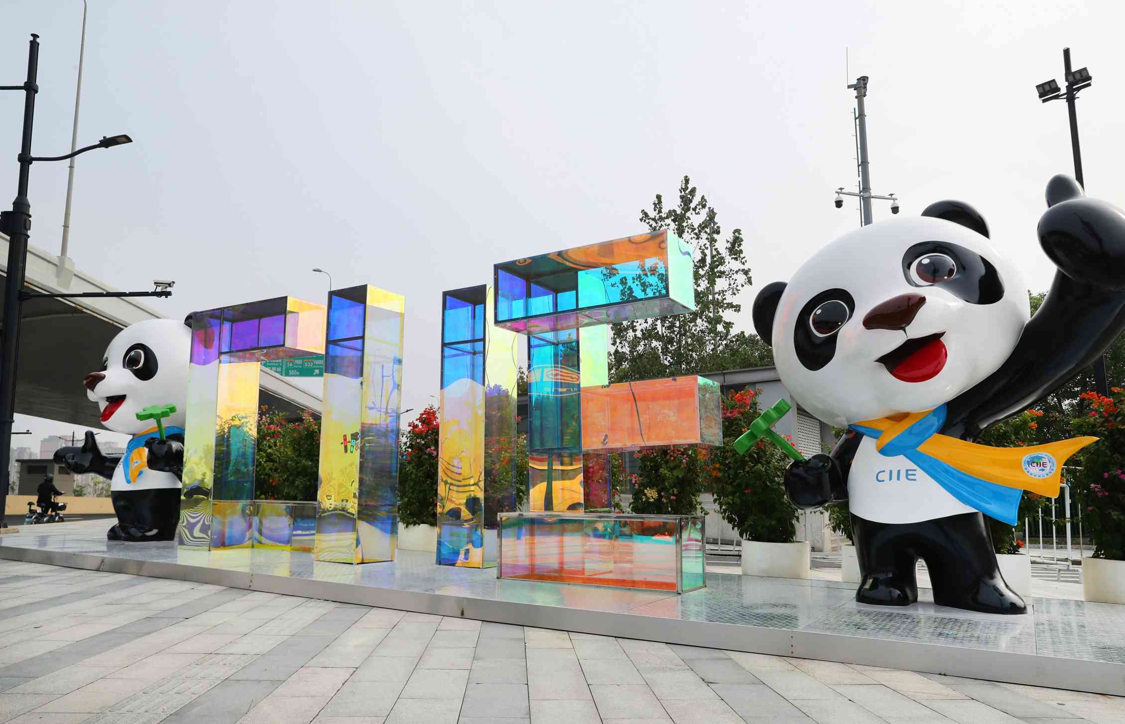 第四届进博会开幕在即,国家会展中心(上海)场馆及周边布置了众多进博元素装饰,进博气氛渐浓。图为10月22日拍摄的国家会展中心(上海)北入口处附近的进博会装饰。新华社记者 方喆 摄
