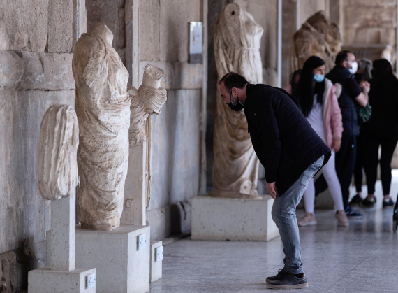4月18日,游客在希腊首都雅典的市政广场遗址参观。(新华社发,马里奥斯·罗洛斯摄)