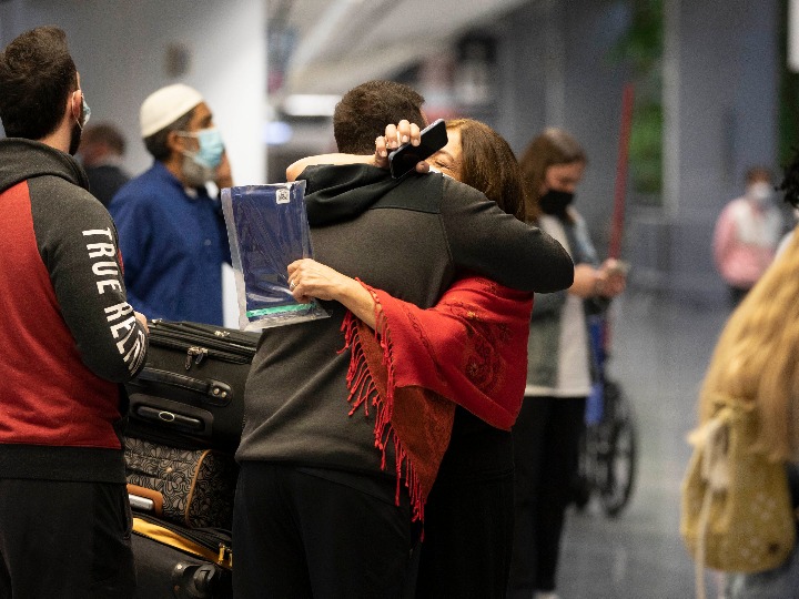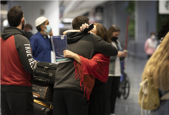 新华社北京11月9日电 爱人亲吻、祖孙相拥……随着美国政府8日放宽入境限制,多地机场和水陆口岸上演一幕幕被新冠疫情阻隔的亲人久别重逢的感人场景。