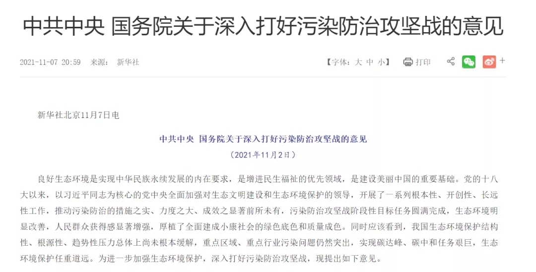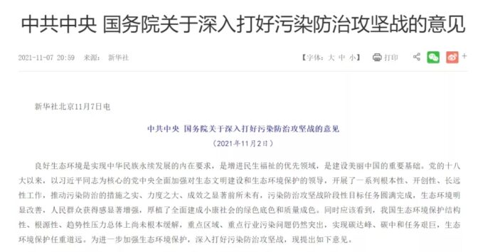 最近,中办国办印发了一份重磅文件——《关于深入打好污染防治攻坚战的意见》(简称《意见》),提出以更高标准打好蓝天、碧水、净土保卫战,并明确了行动时间表,其中许多数据、指标可以说相当严格。