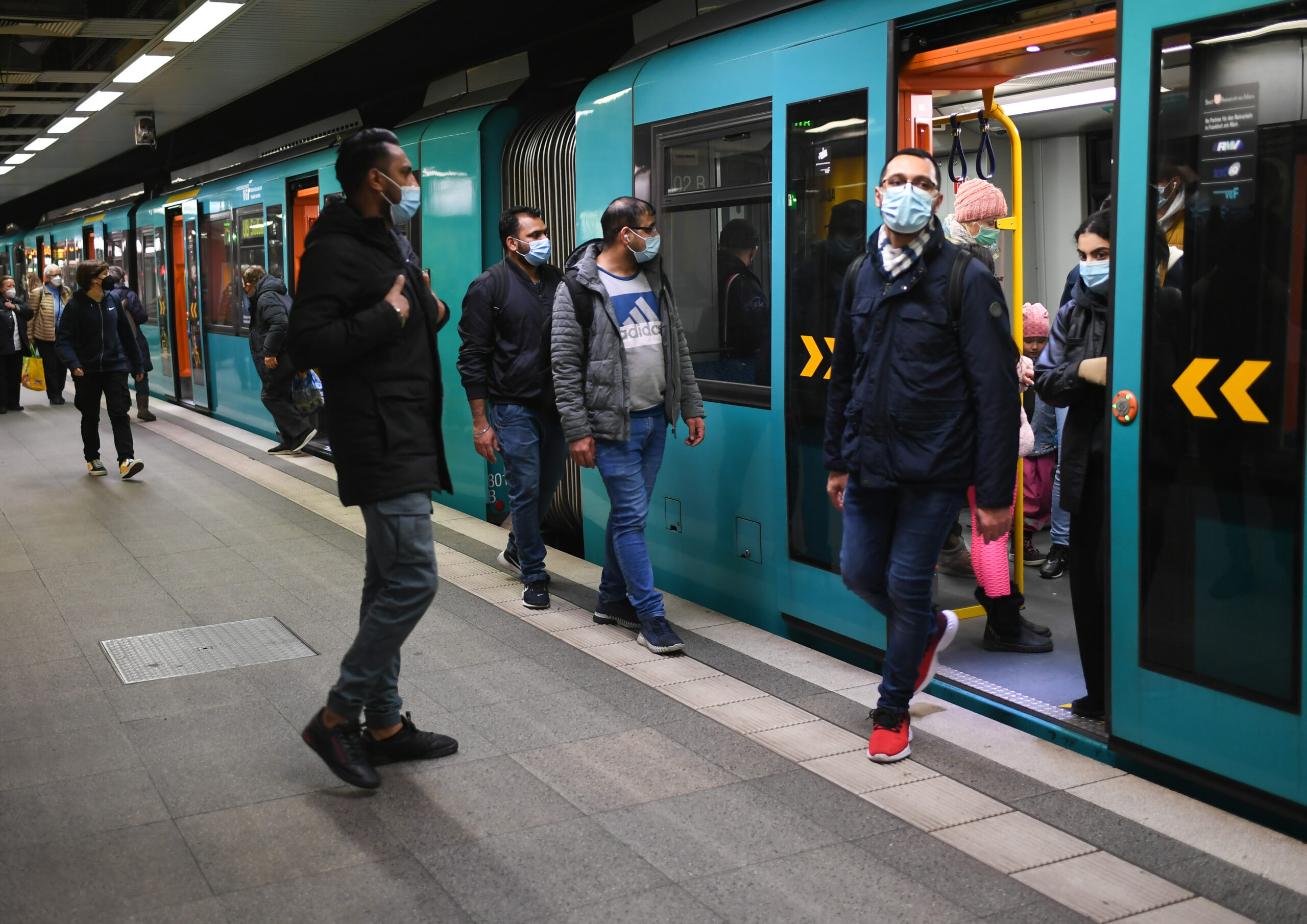 11月10日,人们在德国法兰克福一处地铁站乘车。(新华社记者逯阳摄)