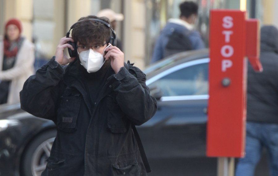 11月8日在奥地利维也纳街头拍摄的佩戴口罩的市民。(新华社记者郭晨摄)