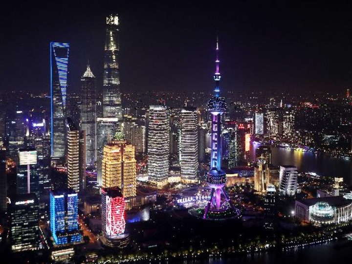 从上海白玉兰广场顶楼远眺浦东陆家嘴金融区(2020年10月26日摄)。新华社记者 方喆 摄
