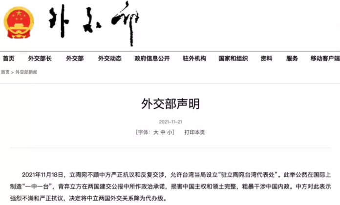 就在中立关系被外交降级后,立陶宛还在狡辩,称立陶宛依旧坚持一个中国政策,但也“有权扩大与台湾的合作”,包括建立“非外交使团”。