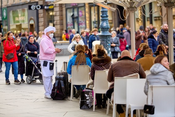 11月20日,市民在奥地利维也纳一家咖啡馆的户外区域就餐。(新华社发,乔治斯·施耐德摄)
