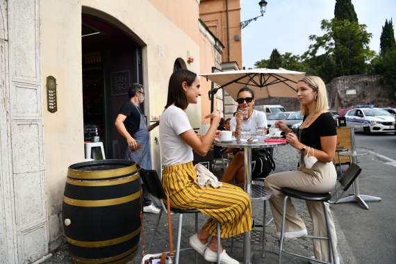 9月29日,人们在意大利罗马的一家咖啡馆消费。新华社记者金马梦妮摄