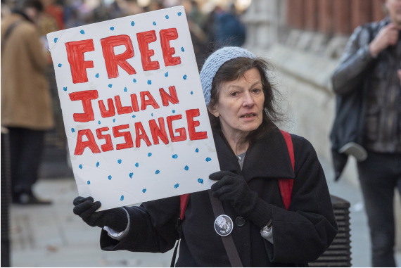 这是12月10日在位于伦敦的英国高等法院外拍摄的阿桑奇的支持者。英国高等法院10日推翻年初地方法院裁决,批准美国引渡阿桑奇。(新华社发,雷伊·唐摄)