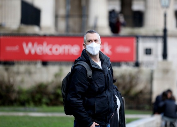 12月12日,在英国伦敦,一名男子佩戴口罩出行。(新华社记者李颖摄)