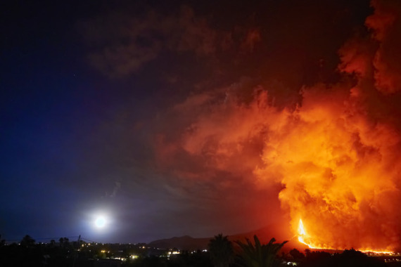 9月24日在西班牙拉帕尔马岛拍摄的老昆布雷火山喷发的景象。(新华社记者孟鼎博摄)