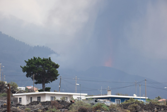 9月21日,西班牙加那利群岛拉帕尔马岛的老昆布雷火山浓烟滚滚。(新华社发,古斯塔沃·巴连特摄)