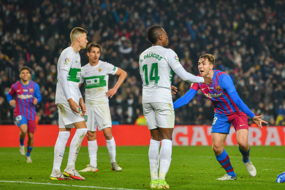 新华社马德里12月18日电(谢宇智) 2021-2022赛季西班牙足球甲级联赛第18轮18日继续进行。巴塞罗那主场3:2击败埃尔切,结束此前连续多场不胜的尴尬。