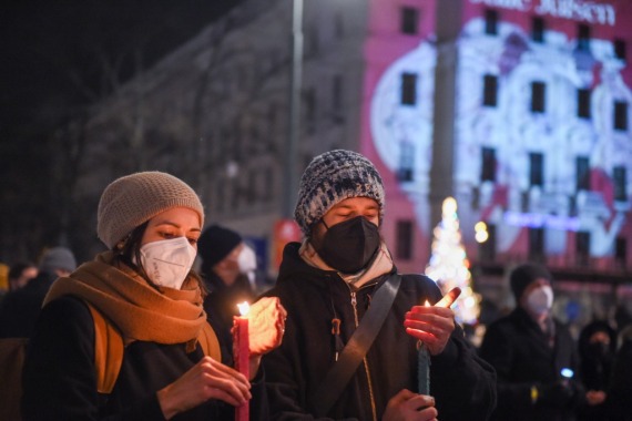 12月19日,在奥地利维也纳,人们用烛光悼念新冠逝者。(新华社记者郭晨摄)
