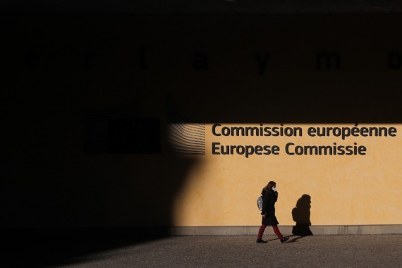 12月21日,一名戴口罩的女子经过比利时布鲁塞尔的欧盟委员会大楼。(新华社记者郑焕松摄)