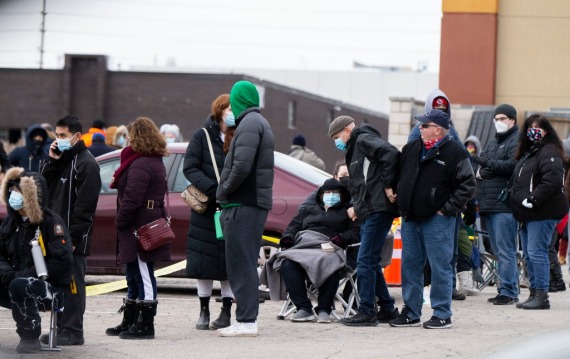 12月21日,人们在加拿大米西索加一处流动新冠疫苗接种点外排队。(新华社发,邹峥摄)