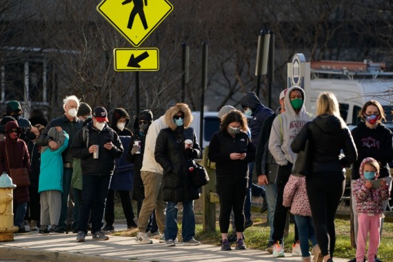 12月22日,在美国弗吉尼亚州阿灵顿,人们排队进行新冠病毒检测。(新华社发,沈霆摄)