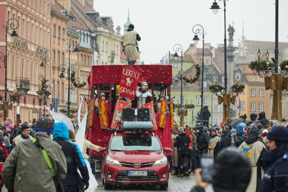 1月6日,在波兰华沙,人们观看“三王节”游行。(新华社发)