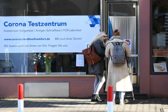 1月10日,人们在德国法兰克福一处新冠检测点外等候。(新华社记者逯阳摄)