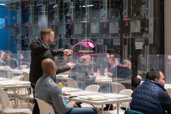 “牛肉汉堡的味道,不亚于那两个快餐品牌。”有媒体记者说。加热面包、煎肉饼、配生菜和酱汁、包装、轨道传送……一次备料,一台机器可连续制作300个。只需20秒,一个新鲜热乎的汉堡就能出炉,应对用餐高峰,毫无压力。