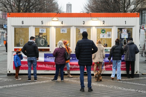 1月12日,在德国首都柏林,人们在一处新冠检测点排队等候检测。(新华社发,斯特凡·蔡茨摄)