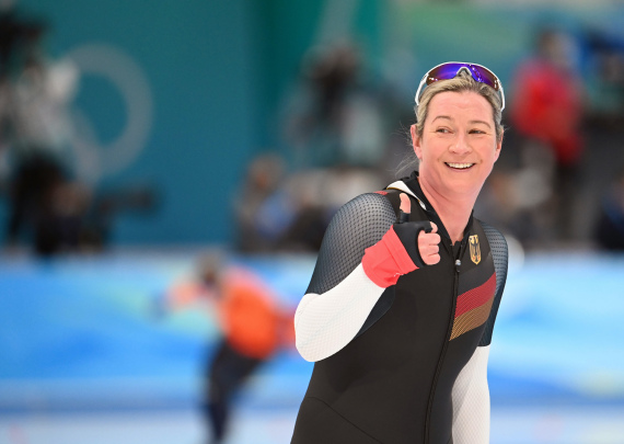 最终,德国人以4分17秒16的成绩结束比赛,比自己20年前的奥运会纪录(3分57秒70)差了近20秒。当滑过终点线时,克劳迪娅没有沮丧,而是举起了双臂,像个胜利者一般,迎接属于自己的“第一”。