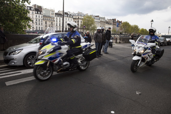 2016年4月27日,在法国巴黎,警方押送巴黎恐怖袭击主要嫌疑人萨拉赫·阿卜杜勒-萨拉姆前往监狱。(新华社发,皮埃尔·安德里厄摄)