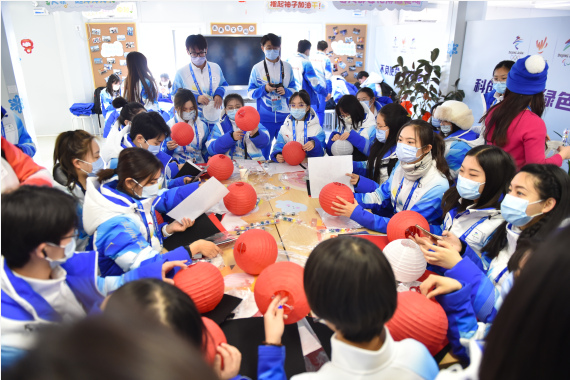 为让各国媒体记者们领略中国佳节的魅力,国家游泳中心“冰立方”举行了猜灯谜、制作元宵花灯的活动,志愿者还将亲手制作的元宵花灯送给了国外媒体记者、运动员等;国家高山滑雪中心新闻运行团队也为当日前来报道的各路记者,准备了一封祝福信和富有传统文化气息的小老虎挂件。