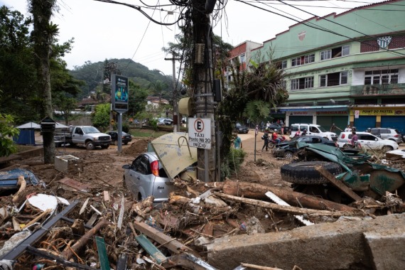 里约热内卢州长克劳迪奥·卡斯特罗说:“这情形简直像战争状态……小轿车挂在电线杆上,汽车翻倒在街头,到处都是淤泥和洪水。”