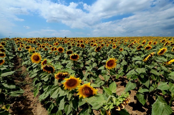 这是2019年7月9日在乌克兰南部敖德萨州拍摄的葵花田。据乌官方统计数据显示,乌葵花籽油年出口额约40亿美元,约占其商品出口总额的10%。(新华社记者陈俊锋摄)