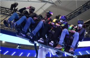 3月1日,人们在西班牙巴塞罗那2022世界移动通信大会上通过虚拟现实技术体验“4D元宇宙”。新华社发(古斯塔沃·巴连特摄)