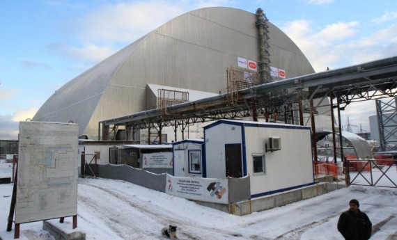 2016年11月29日,在乌克兰基辅附近,切尔诺贝利核电站新掩体正式竣工,将4号机组反应堆罩住。新华社记者陈俊锋摄