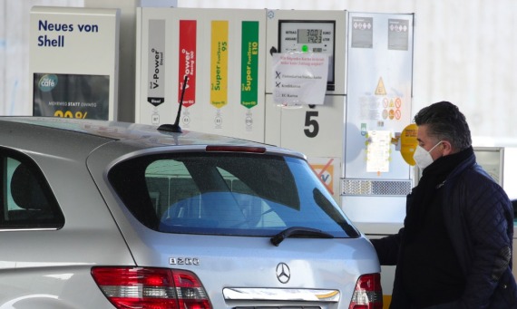 3月18日,一名男子在德国法兰克福一处加油站为汽车加油。新华社发(阿曼多·巴巴尼摄)
