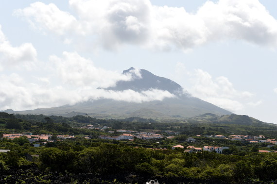 这是2014年7月22日拍摄的亚速尔群岛皮库岛葡萄园区。皮库岛为亚速尔群岛第二大岛,岛上皮库山海拔2351米,为葡萄牙最高峰。(新华社记者张立云摄)