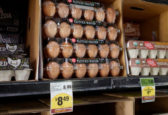 这是4月5日在美国旧金山湾区米尔布雷一家超市拍摄的鸡蛋。新华社发(李建国摄)