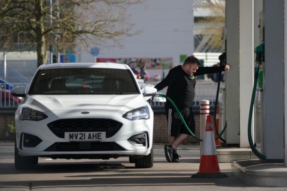 4月13日,一名男子在英国曼彻斯特一处加油站加油。新华社发(乔恩·休珀摄)