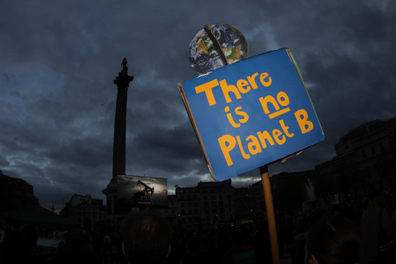 图为2021年11月6日,人们在英国伦敦特拉法加广场参加集会,号召为应对气候变化采取更多行动。新华社发(蒂姆·爱尔兰摄)