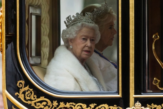 2019年10月14日,在英国伦敦,英国女王伊丽莎白二世乘坐马车前往议会,出席英国新一届议会开幕仪式。新华社发(雷伊·唐摄)
